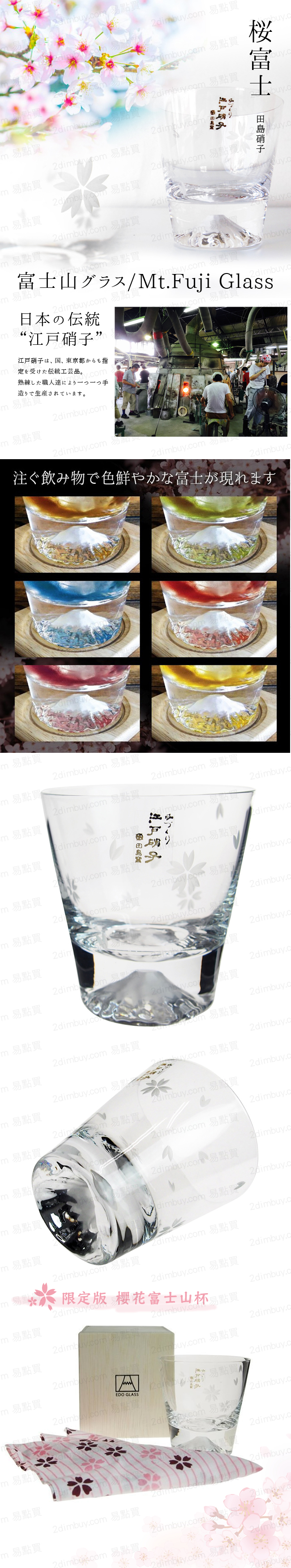 日本江戶硝子富士山杯 櫻花限定版(木製禮盒裝)